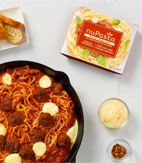 Shirataki, konnyaku and nuPasta are all foods made with konjac. nuPasta is a Canadian product formulated to be softer in texture and more pasta like in appearance.